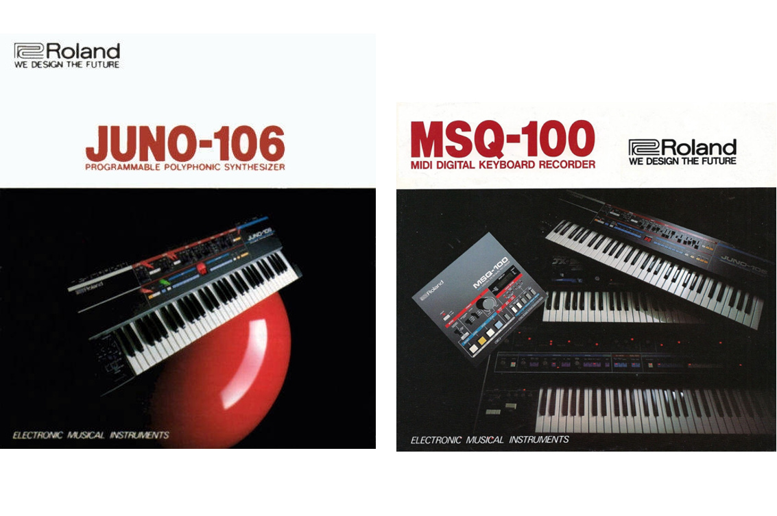 Left- Original Sales Brochure. Right- Brochures for the MSQ-100 featuring also the Juno 106.